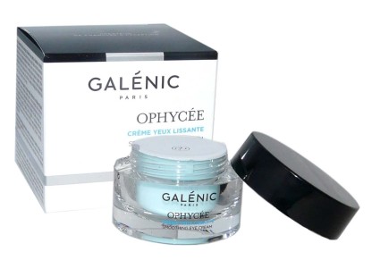Depuis 1978, GALENIC offre le meilleur de la nature à travers sa connaissance approfondie de la physiologie cutané, et développe des produits dermo-cosmétiques haut de gamme pour accompagner les femmes exigeantes dans leur quête de beauté. La collection OPHYCEE propose des rituels de soins anti-rides conçus pour hydrater, repulper et offrir une seconde jeunesse à la peau. Ces soins sont composés d’algue bleue d’eau douce aux pouvoirs restructurants incomparables, apparue sur terre il y a des milliards d’année et à l’origine de la vie. OPHYCEE crème yeux lissante de GALENIC, à la texture fraîche et fine, légèrement bleutée, qui pénètre la peau sans effet de gras, au parfum délicat de melon d’eau, jasmin et bois de santal, enrichie en vitamine E antioxydante, molécules hydratantes et poudres optiques, est un soin spécialement formulé pour corriger la zone fragile du regard : réduire les poches et les cernes, lisser les rides, illuminer les zones d’ombres et ouvrir le regard.