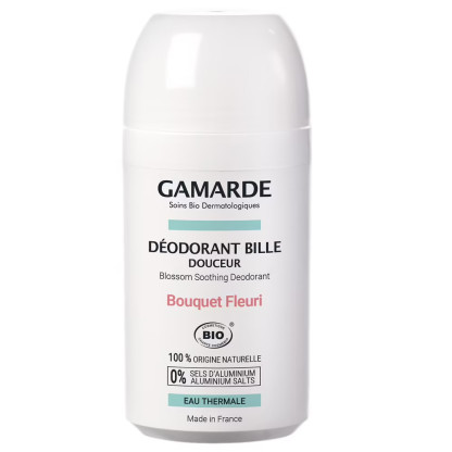 Déodorant bille douceur bouquet fleuri de GAMARDE, la beauté certifiée BIO d’origine naturelle dans un soin conçu pour lutter contre la formation des mauvaises odeurs et rafraîchir les peaux délicates, longue durée.