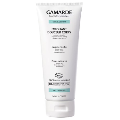 Exfoliant douceur corps de GAMARDE, la beauté certifiée BIO d’origine naturelle dans un soin conçu pour nettoyer en douceur et offrir un effet « peau neuve » au corps.