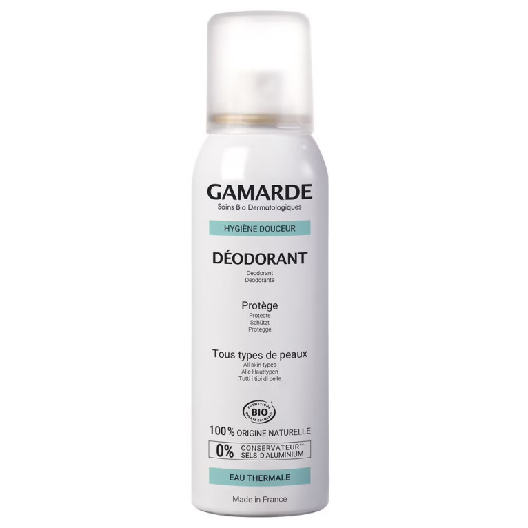 Déodorant spray de GAMARDE, la beauté certifiée BIO d’origine naturelle dans un soin conçu pour lutter contre la formation des mauvaises odeurs et rafraîchir la peau, longue durée.