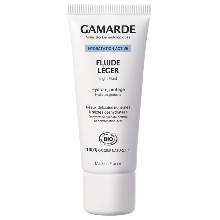 Hydratation active fluide léger de GAMARDE, la beauté certifiée BIO d’origine naturelle dans un soin conçu pour hydrater et apaiser les peaux normales à mixtes.