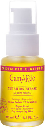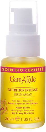 Nutrition intense sérum argan de GAMARDE, la beauté certifiée BIO d’origine naturelle dans un soin concentré en huile d’argan conçu pour nourrir intensément et réparer les peaux sèches à très sèches.
