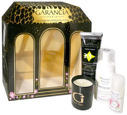 Le coffret ENSORCELANTE de GARANCIA, la magie de la botanique dans un coffret à offrir ou à se faire offrir pour prendre soin de soi et révéler tout l’éclat et la douceur de sa peau : Pschitt Magique (100ml) ; Formule Ensorcelante anti-peau de Croco (150g) ; Source micellaire Enchantée rose (30ml) ; Bougie (65g).