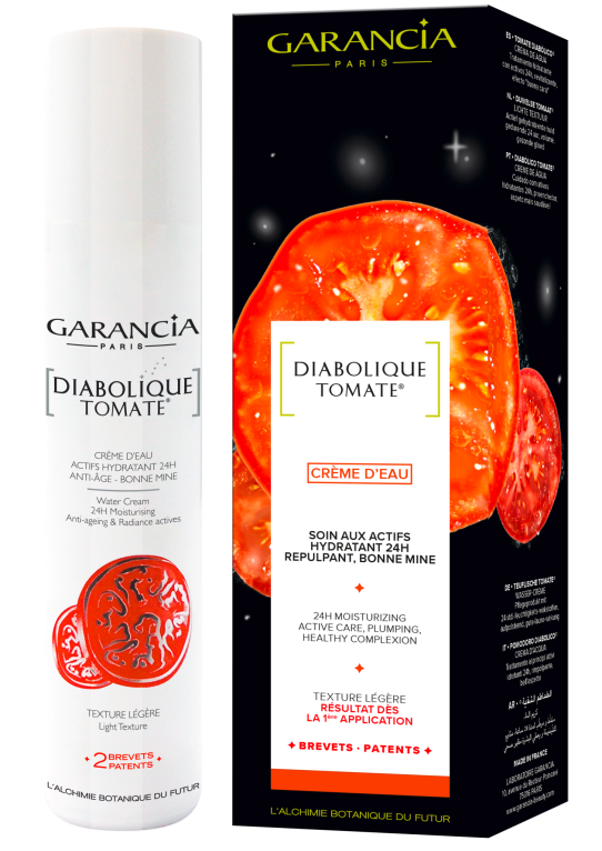 Diabolique tomate crème d’eau de GARANCIA discount, magie et beauté dans votre parapharmacie en ligne à prix discount, pour une crème concentrée d’hydratation à effet bonne-mine instantané peaux normales à mixtes.