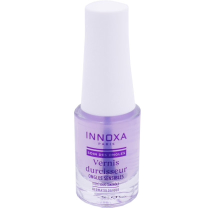 Depuis 1920, INNOXA offre aux femmes des soins de maquillage qui allient séduction, plaisir des textures, couleurs intenses, formules haute tolérance, spécialement développés pour la mise en beauté des peaux et des yeux sensibles. INNOXA propose une gamme de vernis à ongles conçus pour le soin et la beauté des ongles sensibles. Leur formule hypoallergénique, sans paraben, phénoxyéthanol, résine formaldéhyde, toluène, dibutylphtalate ou camphre, enrichie en cystéine, mica et biotine aux propriétés protectrices, fortifie les ongles et assure une excellente tenue. La formule du Vernis à ongles Durcisseur qui contient des actifs d’orgine naturelle (coton, maïs, graine de rose), protège les ongles fragiles et les renforcent pour les rendre plus solides face aux agressions quotidiennes (chocs, produits agressifs,…) en formant une barrière protectrice pour les durcir rapidement. Il durcit la kératine et restructure les ongles. Plus forts, les ongles seront résistants face à la vie quotidienne (climat, détergent, chocs,…).