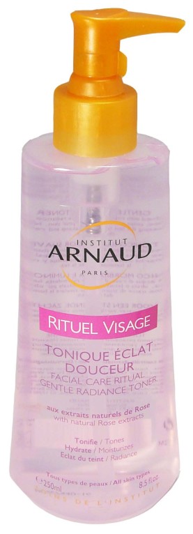 La gamme Rituel visage des Instituts Arnaud est composée de soins nettoyants et démaquillants très doux destiné aux peaux sensibles. Tonique éclat douceur Rituel visage est une lotion à base d’eau de rose, d’extrait de claendula, d’aloe vera, et de glycérine élimine le reste du maquillage tout en respectant la peau sensible, tonifie, hydrate et apaise la peau. Après le soin, la peau est douce, tonique et délicatement parfumée. Le teint est éclatant.