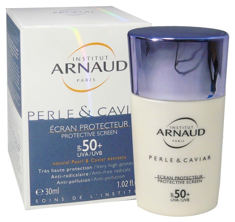 La gamme Perle et Caviar des Instituts Arnaud est composée de soins anti-âge et régénérant pour redonner de l’éclat à la peau jour après jour. L’Ecran protecteur Perle et Caviar composé d’extraits de Perle de Culture et de Caviar, d’acide hyaluronique, d’extrait d’immortelle bleue, de filtre UVA/UVB et de glycérine, régénère l’épiderme afin de diminuer les signes de l’âge (rides et ridules) en les lissant, ainsi que les cellules cutanées, raffermit la peau, protège des agressions quotidiennes et des rayons du soleil pour lutter contre le vieillissement cutané, et hydrate intensément et en profondeur la peau pour redonner de la douceur. Dès l’application, la peau est efficacement protégée du soleil et sublime.