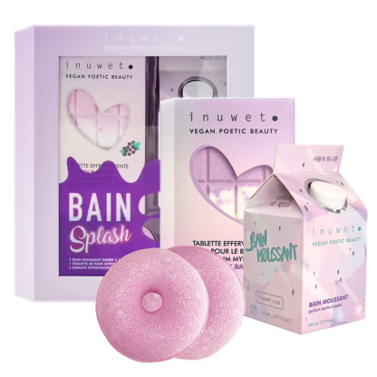 Découvrez le coffret bain Splash Barbe à Papa Myrtille de la marque Inuwet, idéal pour un moment de détente et de douceur. Ce coffret contient 3 produits aux délicieuses senteurs de barbe à papa et de myrtille : une tablette effervescente parfum myrtille (200g), un bain moussant parfum barba à papa (230ml) et deux donuts effervescents (2 X 30g). Les produits sont tous végans et s'adaptent à tous les types de peau.