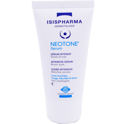 Le Sérum Intensif Taches Brunes NEOTONE discount des laboratoires ISISPHARMA, la dermatologie à la portée de tous dans votre parapharmacie en ligne à prix discount, dans un soin nocturne qui unifie le teint du visage et estompe les taches du visage, du décolleté et des mains rapidement.