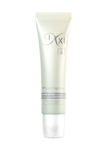 La marque IXXI des laboratoires DRT est composée de produits cosmétiques anti-âges à base d’extrait de Polyphénols de Pin breveté 100% d’origine naturelle pour les bienfaits de la peau au quotidien. Le concentré correcteur Pearlixime d’IXXI composé de Lumi Pin, d’extraits de kiwi et sophora, d’OPCI Pin, d’extrait de pâquerette, atténue les taches pigmentaires localement et protège de l’hyperpigmentation, inhibe l’activité de la tyrosinase dans les ménlanocytes qui est la cause de l’hyperpigmentation, éclaircit en influençant la mélanogénèse, répare et protège la peau des radicaux libres, et unifie la clarté de la peau. Dès l’application, les taches s’estompent, la peau s’éclaircit et est éclatante.