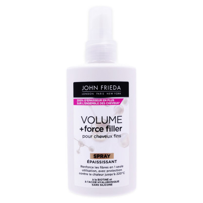 Le spray épaississant Volume + Force Filler de la marque John Frieda est en vente en ligne, sur le site de votre parapharmacie à prix discount. Ce produit innovant est spécialement conçu pour apporter volume et force aux cheveux fins et affaiblis.