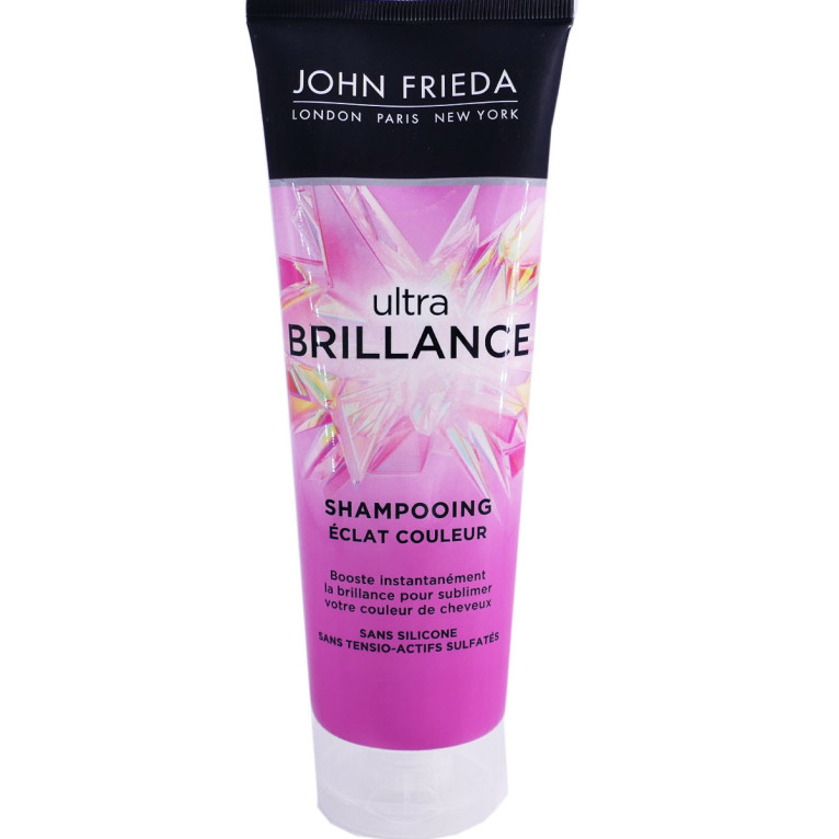 Shampooing Eclat Couleur Ultra-BRILLANCE discount de JOHN FRIEDA, expertise, style et élégance capillaire, dans un soin d’hygiène capillaire pour laver en douceur et sublimer l’éclat des cheveux naturels ou colorés, dans votre parapharmacie discount.
