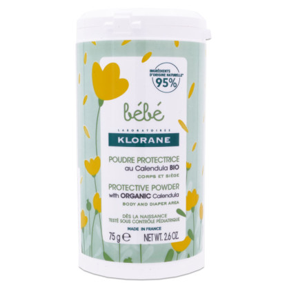 KLORANE BEBE POUDRE PROTECTRICE 75G est en vente en ligne sur le site de votre parapharmacie à prix discount, conçue pour protéger la peau délicate des bébés.