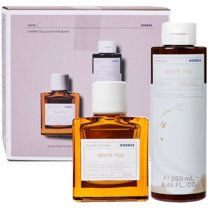 Le Coffret Collection « Thé Blanc » discount de KORRES, une fragrance féminine pour la femme sensuelle dans votre parapharmacie en ligne, dans une Eau de toilette White Tea (50ml) et un Gel douche White Tea (250ml) aux notes hespéridés, et fraîches.