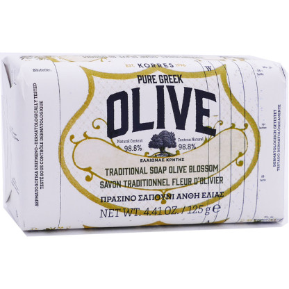 Le Savon Pure greek Olive Fleur d’Olivier discount de KORRES, les vertus de l’olive Crétoise dans votre parapharmacie en ligne, dans un soin d’hygiène à l’olive et la fleur d’olivier. Pour le corps et le visage. Tous types de peaux même sensibles