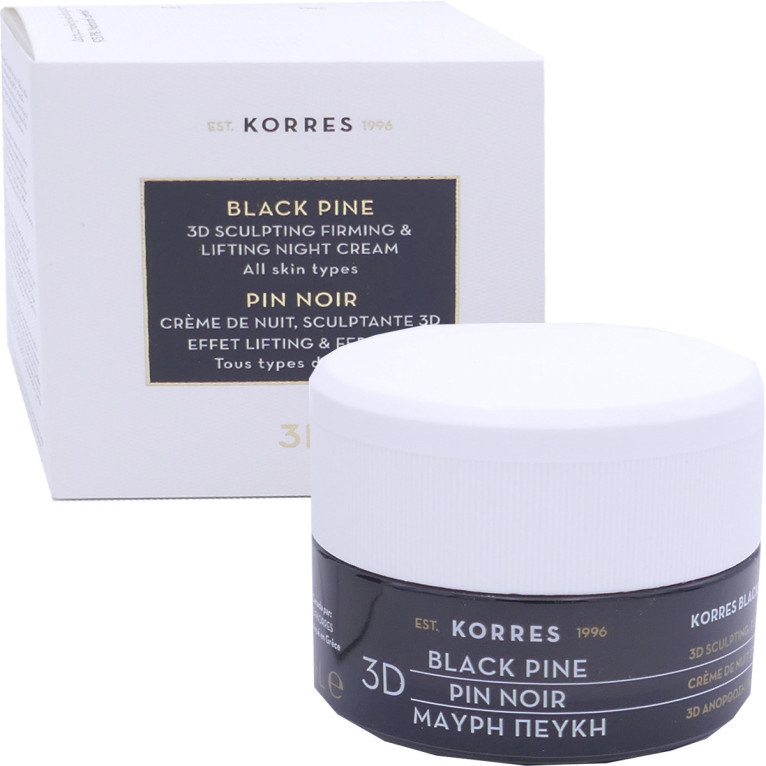 La Crème de nuit Sculptante 3D Pin noir de KORRES discount, la crème anti-âge global dans votre parapharmacie en ligne à prix discount, pour un visage rajeunit, frais et une peau raffermie au réveil. Tous types de peaux matures