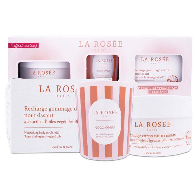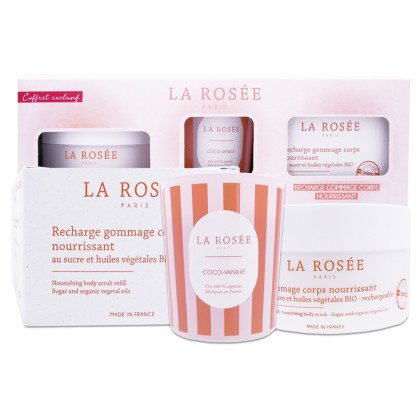 LA ROSEE COFFRET GOMMAGE CORPS + RECHARGE + BOUGIE