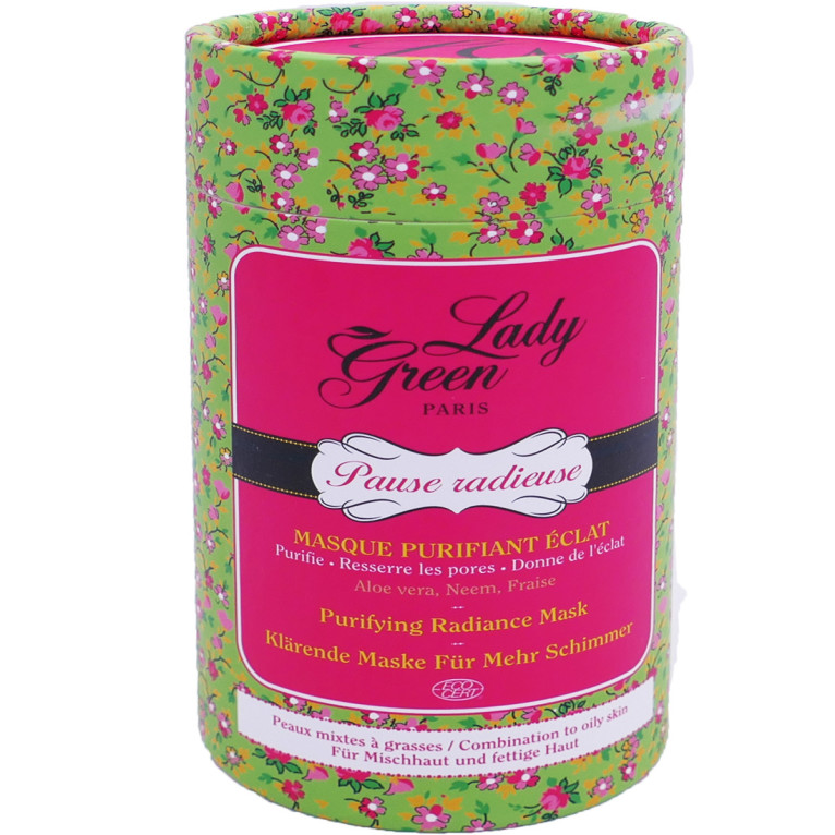 Pause Radieuse de LADY GREEN à prix discount, la beauté au naturel dans votre parapharmacie en ligne discount, dans un Masque purifiant conçu pour purifier la peau et redonner de la clarté au visage des peaux normales mixtes, grasses à imperfections, visage.