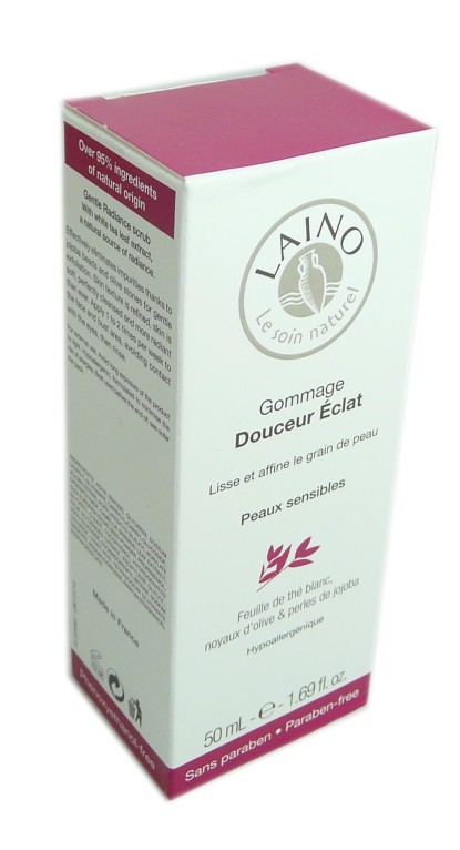 Depuis 1953, la marque LAINO fidèle à ses engagements d’authenticité et naturalité, développe des produits cosmétiques sûrs, efficaces, composés d’ingrédients naturels, simples et traditionnels : argile, pierre d’alun, huile d’olive, savon de Marseille, huile d’amande douce… La gamme des soins visage de LAINO propose des produits à la formule haute tolérance composée de +de 95% d’ingrédients naturels, pour offrir le plus doux de la nature aux peaux délicates. Ils sont élaborés à base de feuilles de thé blanc, un actif aux incroyables vertus anti-oxydantes qui agit sur les imperfections, les rougeurs, la déshydratation et restaure l’éclat de la peau. Le gommage douceur éclat de LAINO aux perles de jojoba est spécialement conçu pour éliminer en douceur les cellules mortes et les impuretés sans agresser l’épiderme, lisser et affiner le grain de peau, rétablir douceur et éclat au visage. Sans paraben, sans phénoxyéthanol, hypoallergénique, testé sous contrôle dermatologique.