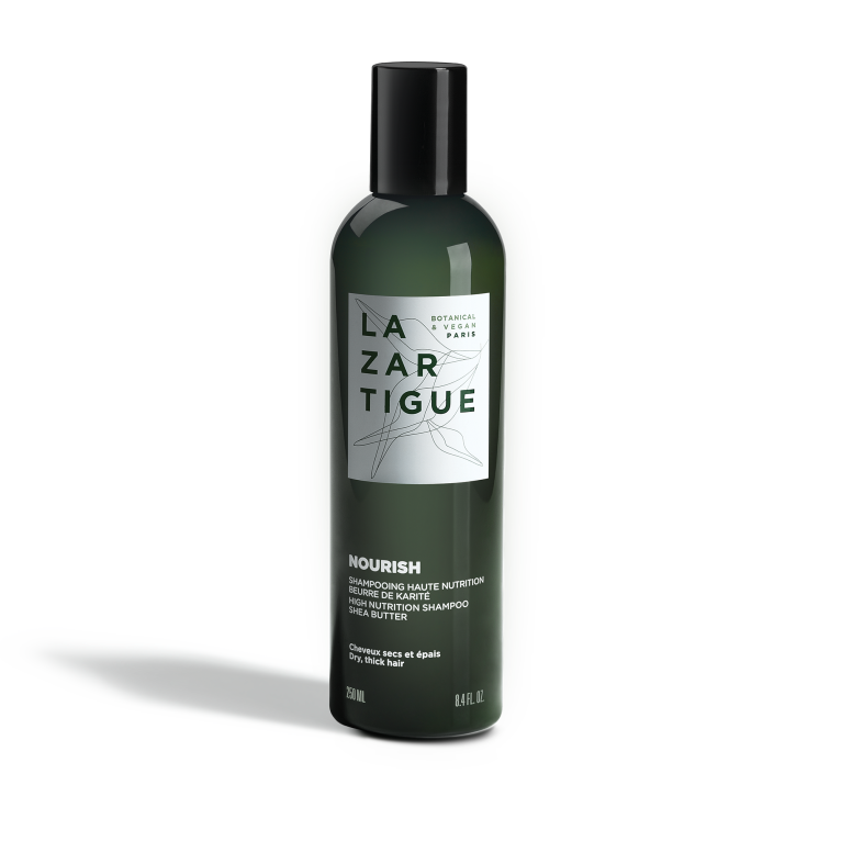 LAZARTIGUE est un laboratoire français créée dans les années 60 qui conçoit des produits capillaires botaniques et vegan avec 89% minimum d’ingrédients d’origine naturelle, sans sulfate ni silicone, pour révéler la beauté de toutes les chevelures. En élaborant des soins capillaires (beauté, traitants, colorations), tous les cheveux trouveront des solutions pour mettre en valeur la chevelure. Shampooing Nourish est un shampooing hautement nutritif vegan aux propriétés nourrissantes et réparatrices indiqué pour les cheveux secs et épais. Une formule à la base lavante douce respectueux du cheveu et du cuir chevelu au pouvoir hautement nourrissant grâce aux propriétés du beurre de karité et de babassu ainsi qu’à l’huile de coco (riche ens acides gras) pour des cheveux propres, protégés, assouplis et adoucis. Sa texture en crème fluide enveloppe d’un délicat parfum aux notes de millefeuille aux graines de macadamia grillées. La fibre retrouve sa souplesse et la chevelure douceur et brillance.