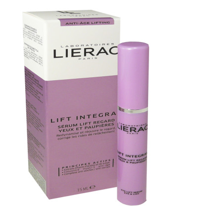 LIERAC est la première marque française dermo-cosmétique spécialisée dans la correction du vieillissement et des désordres cutanés, et instauratrice de la « cosmétique technique » qui allie plaisir des sens et efficacité. La gamme LIFT INTEGRAL est constituée de soins anti-âge d’exception à l’effet lift-injection, aux galéniques sensorielles, aux incroyables propriétés repulpantes pour redonner voltme et retrouver un bel ovale, développés pour apporter des réponses immédiates et à long terme au problème de relâchement cutané. LIFT INTEGRAL Sérum Regard de LIERAC, à la texture active sérum-gel, est spécialement conçu pour rehausser les paupières et agir sur les signes de fatigue du contour des yeux semblable à une injection esthétique et un lifting. Sa composition associe un complexe d’actifs liftants (extrait d'acajou et extrait de tulipe pourpre) capable de retendre les zones relâchées du contour des yeux comme les paupières, en réactivant la synthèse du collagène pour une peau redensifiée et d’augmenter la synthèse des 30 protéines fondamentales de la MEC pour combler les zones creuses ; un concentré Hyalu-3 (acides hyaluroniques de haut poids moléculaire et microencapsulé, extrait de levure d’agave) anti-âge et un complexe anti-fatigue (acacia, darutoside) pour estomper les cernes et les poches du contour des yeux. Résultats la peau du contour des yeux est repulpée, le regard gagne visiblement en jeunesse en 14 jours. Sans parfum