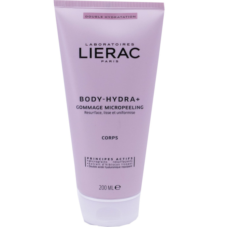 LIERAC est la première marque française dermo-cosmétique spécialisée dans la correction du vieillissement et des désordres cutanés, et instauratrice de la « cosmétique technique » qui allie plaisir des sens et efficacité. La gamme Body-Hydra+ de LIERAC est composée de soins corps ultra-hydratants et tonifiant à base d'acides hyaluroniques pour redonner à la peau de la fraîcheur, de la tonicité et de la douceur. Le Gommage Micropeeling BODY-HYDRA+ hydrate intensément pour redonner de la souplesse à la peau, revitalise, lisse, uniformise et adoucit grâce au complexe hydra-repulpant à base de 2 acides hyaluroniques aux actions instantanées sur la surface de la peau et progressive pour une action repulpante pour longtemps, d’extrait d’hibiscus, associé à des micrograins resurfaçants pour éliminer les impuretés et affiner le grain de peau. La peau retrouve souplesse et douceur. Jour après jour, la peau retrouve sa fermeté, son éclat, elle est pulpeuse et retrouve son confort.