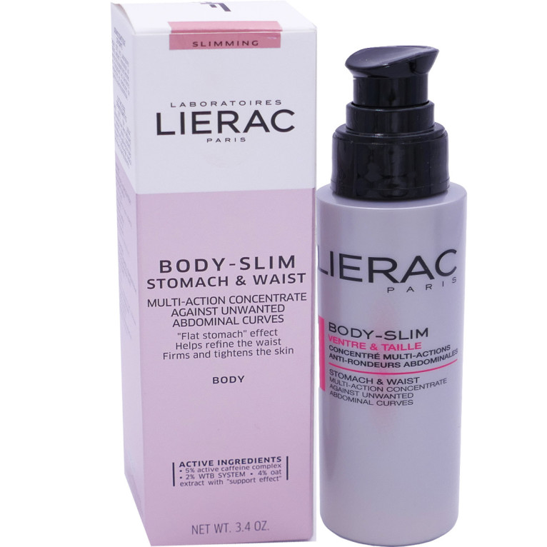 LIERAC est la première marque française dermo-cosmétique spécialisée dans la correction du vieillissement et des désordres cutanés, et instauratrice de la « cosmétique technique » qui allie plaisir des sens et efficacité. La gamme BODY SLIM corps est constituée de soins ciblés, développés pour agir efficacement contre la cellulite, remodeler la silhouette, raffermir et améliorer la qualité de la peau. BODY-SLIM Ventre & Taille de LIERAC, à la texture gel crème fraîcheur, est spécialement conçu pour réduire les graisses abdominales, affiner la silhouette et raffermir la peau. Sa formule est composée du WTB System, breveté LIERAC, qui associe 3 actifs (lotus sacré-saule blanc-peptide biotechnologique) capables de transformer les adipocytes « stockeurs de graisses » en adipocytes « brûle-graisses », d’un complexe Liop-Reverse (7,5%) à base de caféine active dosée à 5%, d’un complexe de glaucine (2,5%) booster de caféine pour transformer les adipocytes en cellules types « fibroblaste », d’un extrait d’algue brune pour agir sur la graisse abdominale et de polysaccharides d’avoine pour un gainage instantané. Rapidement les amas graisseux au niveau de la zone abdominale s’estompent pour retrouver un ventre plat et une taille afinée.