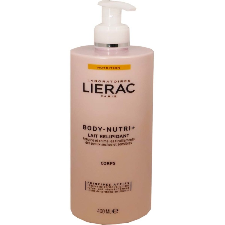LIERAC est la première marque française dermo-cosmétique spécialisée dans la correction du vieillissement et des désordres cutanés, et instauratrice de la « cosmétique technique » qui allie plaisir des sens et efficacité. La gamme Body-Nutri+ de LIERAC est composée de soins corps ultra-hydratants nourrissants et tonifiant à base d'acides hyaluroniques pour redonner à la peau de la fraîcheur, de la tonicité et de la douceur. Le Lait relipidant Body Nutri+ hydrate intensément pour redonner de la souplesse et du confort à la peau sèche et sensible qui tiraille, revitalise, lisse, nourrit intensément et adoucit grâce au complexe hydra-repulpant à base de 2 acides hyaluroniques aux actions instantanées sur la surface de la peau et progressive pour une action relipidante et repulpante pour longtemps, de silicium et d’extrait d’hibiscus, associé à de l’urée hydratante, de l’huile de carthame émolliente, et du beurre de karité nourrissant. Sa texture non collante et enveloppante laisse la peau souple et douce. Jour après jour, la peau retrouve sa tonicité, elle est pulpeuse et retrouve son confort.