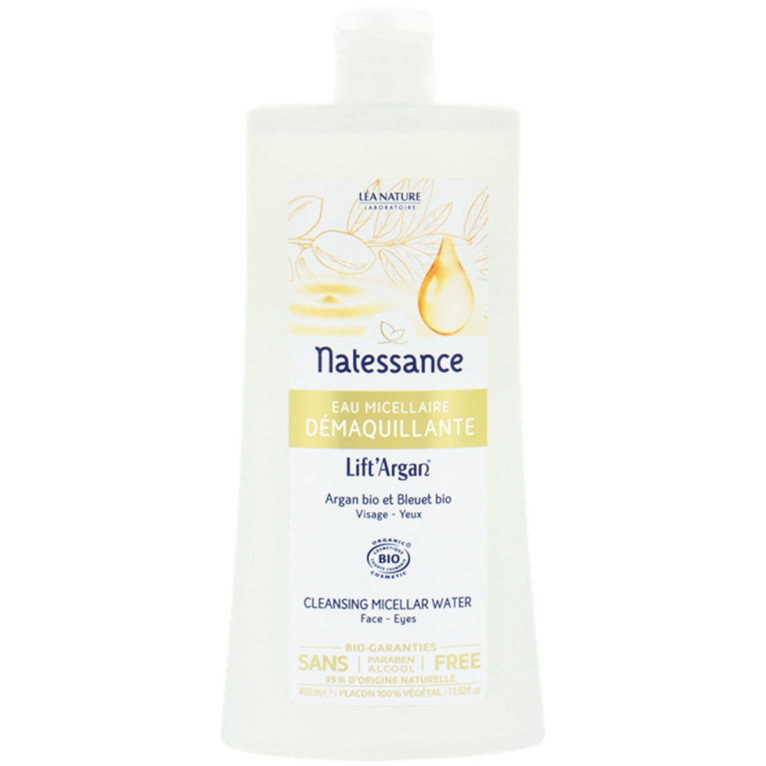 Natessance Lift’Argan Eau démaquillante micellaire discount de LEA NATURE, les secrets de l’huile d'argan dans un soin conçu pour démaquiller en douceur les yeux et le visage des peaux délicates, dans votre parapharmacie en ligne à prix pas discount.
