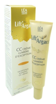 Lift’Argan développe des soins cosmétiques naturels à base d’huile d’argan biologique, ingrédient aux incomparables bienfaits sur la peau. Riche en acides gras essentiels, vitamine A et E, l’huile d’Argan au puissant pouvoir antioxydant, permet de lutter efficacement et naturellement contre le vieillissement cutané. La gamme Lumière d’Exception propose des soins composés d’actifs naturels véritables capteurs de lumière : la poudre d’ambre et des nacres dorées. Il en résulte des soins aux galéniques sensorielles et aux parfums envoutants qui révèlent en un seul geste l’éclat du visage. La CC Cream Lumière d’Exception de Lift’Argan est un soin qui offre 6 actions correctrices en 1 seul geste : des nacres dorées et un complexe pomme/pêche/framboise illuminent la peau, des pigments naturels abricotés unifient le teint, l’acide hyaluronique hydrate l’épiderme, des soft focus flouteurs corrigent les imperfections cutanées, la poudre de silice veloute le visage et le bisabolol apaise la peau. La peau est sublimée, le teint est lumineux, le visage est métamorphosé.