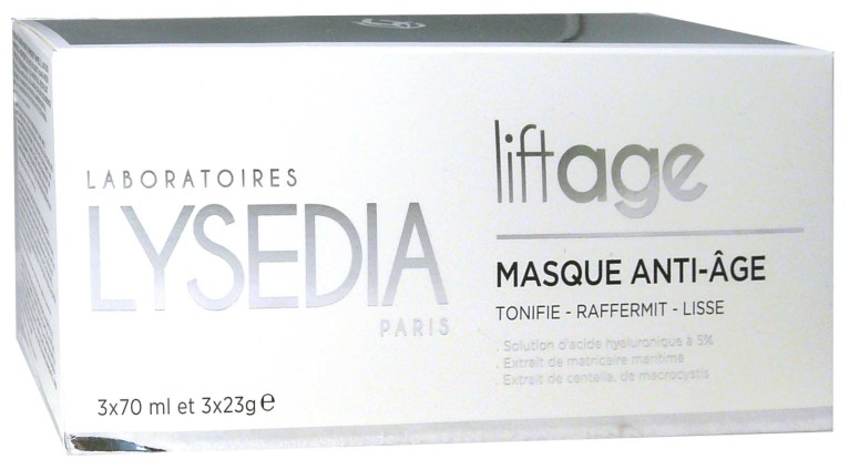 La gamme LIFTAGE des laboratoires LYSEDIA est composée de soins anti-âge destinés à lutter contre les signes du temps et préserver fermeté et beauté de la peau. Le Masque anti-âge LIFTAGE est un soin très concentré à base d’actifs purs aux propriétés anti-âge, d’extraits végétaux et de solution d’acide hyaluronique. Jour après jour, l’extrait de matricaire maritime à l’effet « botox-like », la solution d’acide hyaluronique, l’extrait de centella et le macrocystis, vont réparer les cellules de l’épiderme qui diminuent avec l’âge pour mieux lutter contre l’apparition des rides et ridules des pattes d’oies, redonner du volume à la peau, renforcer les défenses de l’épiderme, stimuler la synthèse d’acide hyaluronique et collagène, protéger la peau des radicaux libres en les inhibant, et hydrater. Jour après jour, la peau est repulpée, rides et ridules lissées pour retrouver un visage rajeunit et un teint unifié et lumineux.