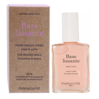 La base lissante Manucurist est formulée par le laboratoire Manucurist, spécialiste de la beauté des ongles. Enrichie en ingrédients nourrissants et protecteurs, cette base lissante permet de lisser la surface de l'ongle pour une application de vernis plus facile et un résultat impeccable. Sa formule légère et non grasse sèche rapidement et prolonge la tenue de votre vernis à ongles.