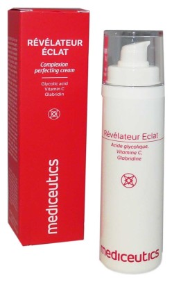 MEDICEUTICS propose des produits cosmétiques haut de gamme, développés en collaboration avec un clinique de chirurgie esthétique, afin d’offrir une haute expertise médicale associée à des galéniques plaisirs, pour potentialiser les résultats des interventions esthétiques à la maison. Révélateur Eclat de MEDICEUTICS, est un soin spécialement conçu pour réguler l’activité des cellules pigmentaires de la peau, réduire les taches existantes, prévenir leur apparition et uniformiser le teint. Sa formule associe de la glabridine, un extrait de réglisse capable de diminuer la synthèse de mélanine, de l’ascorbyl glucoside aux propriétés antioxydantes qui bloque la synthèse de mélanine, et de l’acide glycolique : un agent kératolytique de surface qui améliore de façon significative la qualité de la peau. Recommandé en soin pré ou post traitement dépigmentant.