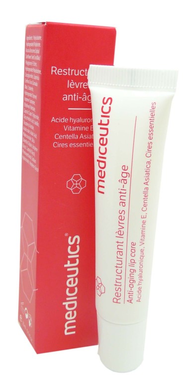 MEDICEUTICS propose des produits cosmétiques haut de gamme, développés en collaboration avec un clinique de chirurgie esthétique, afin d’offrir une haute expertise médicale associée à des galéniques plaisirs, pour potentialiser les résultats des interventions esthétiques à la maison. Restructurant Lèvres de MEDICEUTICS, est un soin à haute performance anti-âge, spécialement conçu pour hydrater, protéger, réparer et rétablir le confort des lèvres sèches et abimées. Sa formule associe 2 types d'acide hyaluronique repulpants et hydratants, de la vitamine E antioxydante, de l’acide 18béta glycyrrhétinique apaisant et décongestionnant, un extrait de Centella Asiatica restructuante et des cires végétales de jojoba, mimosa et tournesol.