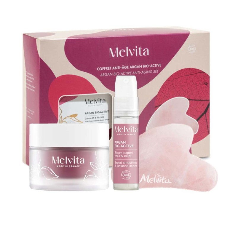 MELVITA COFFRET ANTI AGE ARGAN BIO-ACTIVE 2 SOINS + 1 GUA SHA