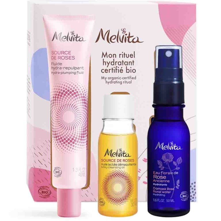 Le Coffret « Mon Rituel Hydratant Certifié Bio » discount de MELVITA, toute la beauté de la nature dans 3 soins à la rose sauvage, pour une routine hydratante et fraîche quotidienne : Fluide hydratant repulpant Source de Roses (40ml) Eau florale de Rose Ancienne (50ml) Huile lactée démaquillante Source de Roses (30ml), dans votre parapharmacie en ligne à prix discount.