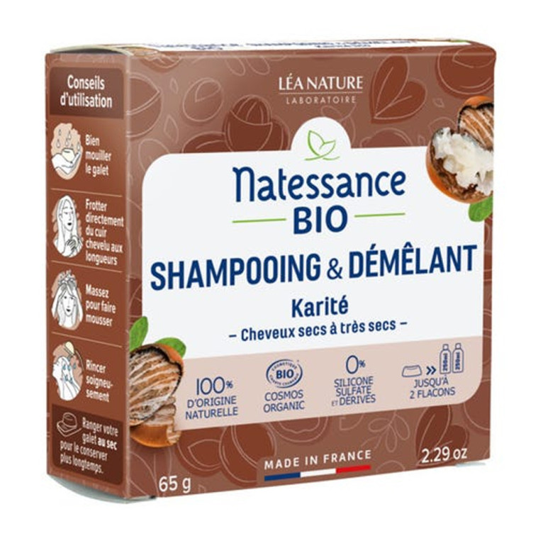 Le shampooing & démêlant solide au karité de Natessance Bio est formulé par le laboratoire Natessance, spécialiste des produits cosmétiques naturels et biologiques.
