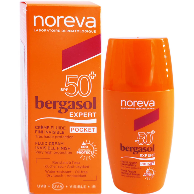 La Crème Fluide Fini invisible SPF50+ Pocket discount de BERGASOL, le soin très haute protection en petit format, pour la protection des rayons du soleil qui sublime la peau dans votre parapharmacie en ligne à prix discount. Corps. Dès 3 ans.
