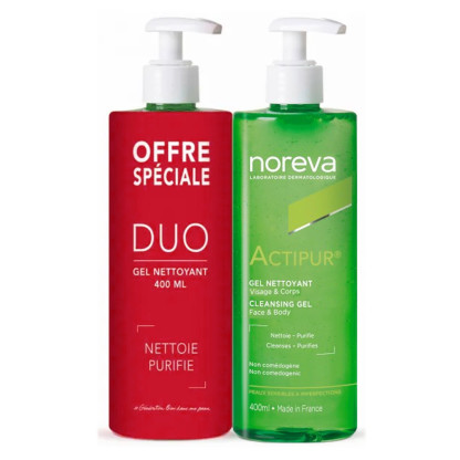 NOREVA ACTIPUR Gel Nettoyant Visage & Corps Lot de 2x400ml est en vente en ligne sur le site de votre parapharmacie à prix discount.