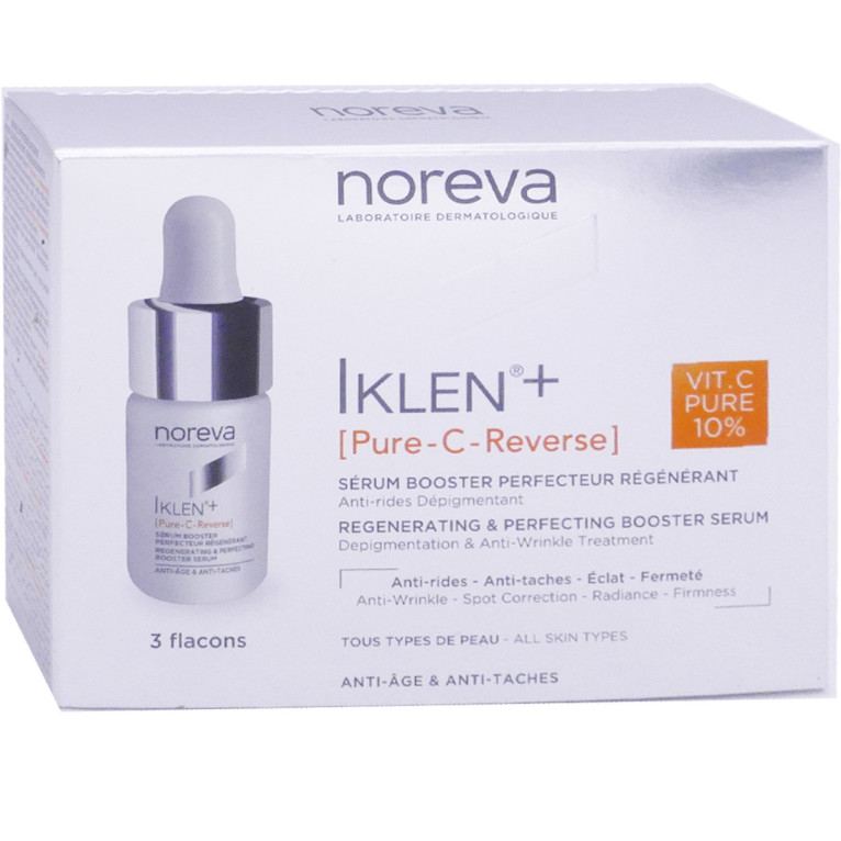 Le Sérum Booster Iklen+ Pure-C-Reverse discount de NOREVA, le soin anti-taches et anti-âge pour corriger et réduire les taches brunes sur le visage, dans votre parapharmacie en ligne à prix discount.