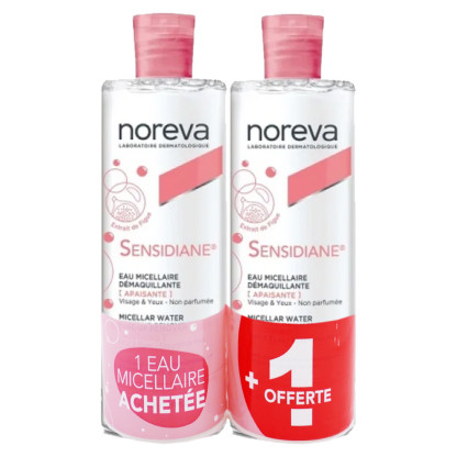 SENSIDIANE Eau micellaire Démaquillante apaisante discount des laboratoires NOREVA, le soin d’hygiène conçu par des dermatologues dans votre parapharmacie en ligne à prix discount, pour nettoyer en douceur, démaquiller les yeux, et le visage des peaux sensibles à intolérantes.