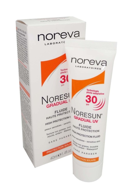 Les laboratoires NOREVA développent des soins dermo-cosmétiques qui allient performance, tolérance et innovation galénique, adaptés à tous les types de peau et offrant une réponse ciblée à chaque besoin cutané. La gamme NORESUN est spécialement conçue pour apporter des solutions haute et très haute protection solaire aux peaux sensibles. NORESUN Gradual UV fluide SPF 30 des laboratoires NOREVA, à la texture légère, non grasse et qui ne laisse pas de trace sur la peau, est un soin nouvelle génération capable d’adapter son niveau de protection en fonction de l’intensité solaire. Sa formule est composée du complexe Melan-Ox 24 qui assure une protection optimale UVA/UVB avec moins de filtres solaires qu’une protection classique et limite le risque d’intolérance. Résistant à l’eau, sans paraben.