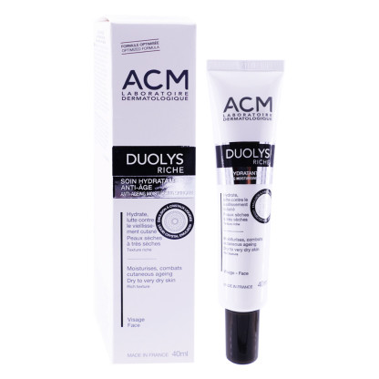 Découvrez le soin hydratant anti-âge ACM Duolys Riche, un produit de qualité issu du laboratoire ACM.