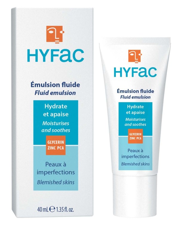 L’émulsion fluide d’HYFAC, le soin qui hydrate et apaise les peaux grasses à imperfections du visage.