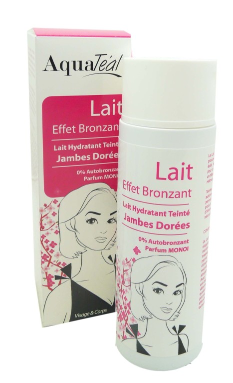 La marque AQUATEAL est composée de produits cosmétiques à base de thé noir associé à l’eau pour offrir toute l’année une peau hâlée même lors de périodes hivernales ! Le lait hydratant jambes dorées est composé de thé noir et d’actifs hydratants, qui va intensifier le bronzage en teintant la peau pour un hâle et un bronzage parfait. Dès l’application, la peau est intensément hydratée pour une peau souple et confortable, et uniformément dorée comme après les vacances ! Il peut être utilisé à volonté selon l’intensité du bronzage voulu en plusieurs applications. En quelques secondes, le produit sèche sans laisser de traces sur la peau ni sur les vêtements pour pouvoir s’habiller rapidement. Instantanément la peau retrouve une couleur hâlée comme après une exposition au soleil et un parfum exotique de Monoï.