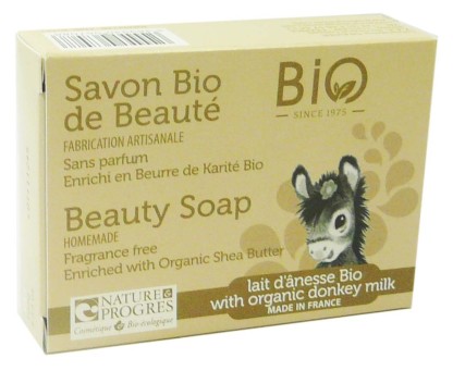 Nature & Progrès propose des produits sains et qualitatifs conçus de façon à préserver la nature et sa biodiversité. Les savons naturels biologiques certifiés Nature & Progrès sont conçus avec 10% de lait d’Anesse d'élevage Français et fabriqués de façon artisanale. Ces savons offrent de formidables bienfaits à la peau grâce à leurs propriétés hautement régénérantes. Le lait d’ânesse, riche en protéines, phospholipides, céramides et glucides, est un tenseur naturel, préconisé dans le traitement des peaux sèches, du psoriasis ou de l’eczéma. Ces savons sont particulièrement indiqués pour la toilette des peaux sensibles, irritables et conviennent parfaitement aux peaux des bébés.