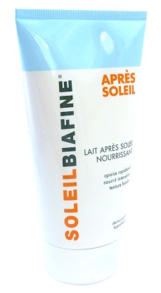 La gamme Soleilbiafine du laboratoire BIAFINE propose des produits hautement efficaces pour protéger la peau de toute la famille du soleil par sa formule essentiellement composée d’un actif végétal antioxydant. Le lait après-soleil nourrissant Soleilbiafine à la texture fondante sans effet gras et non collant, répare la peau qui a été agressée par le soleil et ayant des rougeurs, nourrit, hydrate et apaise grâce à la vitamine E aux propriété antioxydante, au Feverfew qui est un actif breveté d'origine végétale, à la Glycérine qui est un actif hydratant, à l'huile de jojoba, au beurre de karité ainsi qu'à l’allantoïne. Dès l'application la peau est très douce et confortable.