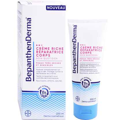 BepanthenDerma Crème Riche Réparatrice Corps à prix discount, le soin hydratant pour les peaux très sèches et sensibles dans votre parapharmacie en ligne discount. Pour nourrissons enfants et adultes Corps