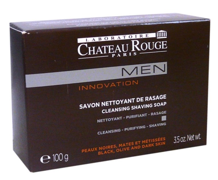 Le laboratoire CHATEAU ROUGE conçoit des produits de beauté pour les peaux noires, mates et métissées à base d’actifs végétaux pour leur plus grand confort. Le Savon nettoyant rase avec douceur et précision en éliminant tous les poils au passage du rasoir, et lutte contre l’apparition de rougeurs, boutons… en purifiant la peau, tout en nettoyant la peau grâce au zinc. Après le rasage, la peau est souple, nette et retrouve une grande douceur.