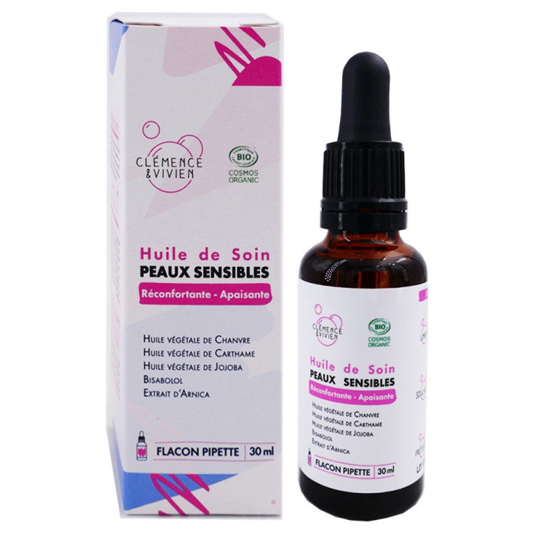Huile de soin Bio Peaux sensibles discount de CLEMENCE & VIVIEN, le sens de la nature dans un soin naturel et Bio protecteur et apaisant des peaux sensibles, dans votre parapharmacie en ligne à prix discount. Visage